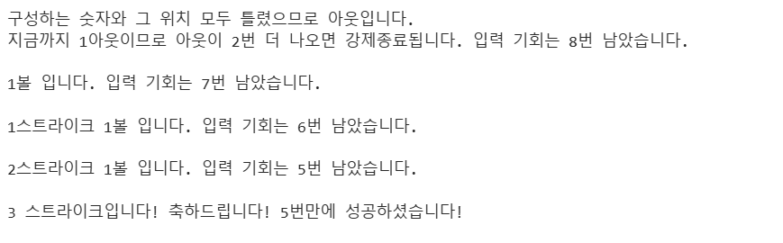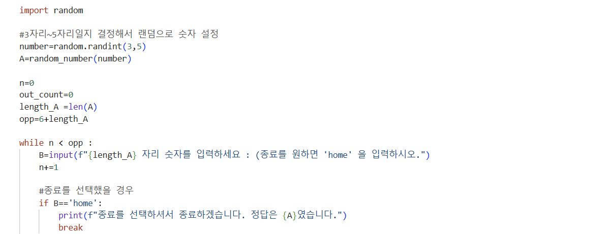 ( number는 자릿수 게임 시작부분에 randint(3,5)를 활용해 3자리, 4자리, 5자리 중 하나가 생성되도록 함. )