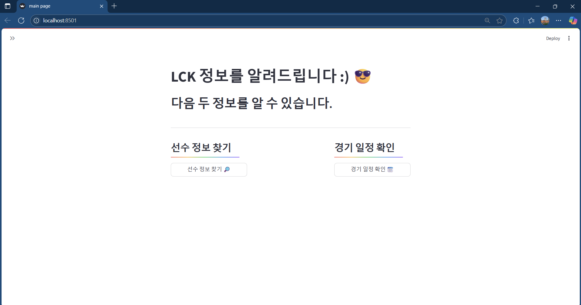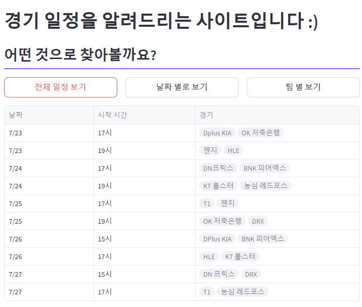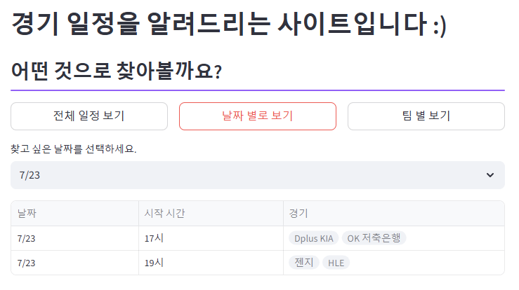 LCK 선수 정보와 경기 일정을 알려주는 페이지를 따로 만들어