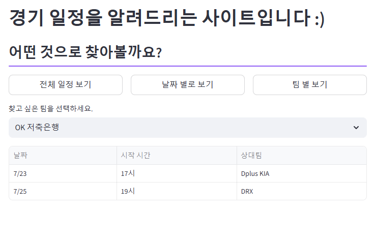 LCK 정보를 알려주는 사이트를 만들어보고자 했습니다.