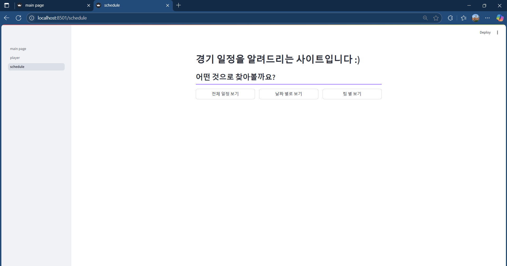가장 많이 신경썼던 부분 중 하나가 바로 팀별 경기 보기 였습니다.